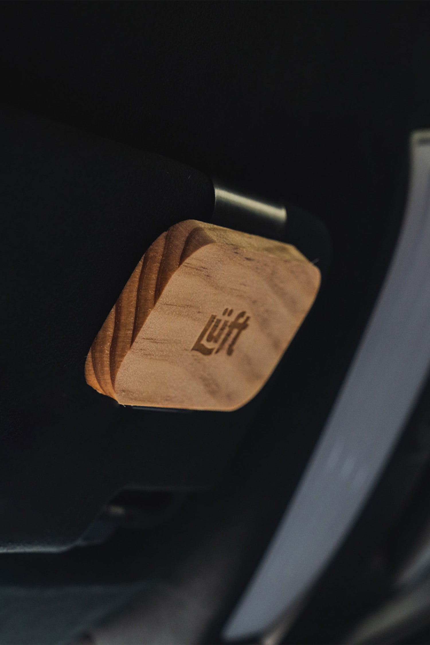 Installing the mount is quick and easy! Simply clip the mount onto your car's visor. The air freshener block attaches magnetically to the mount, ensuring a secure fit. For best results, make sure the Lüft logo is facing outward.